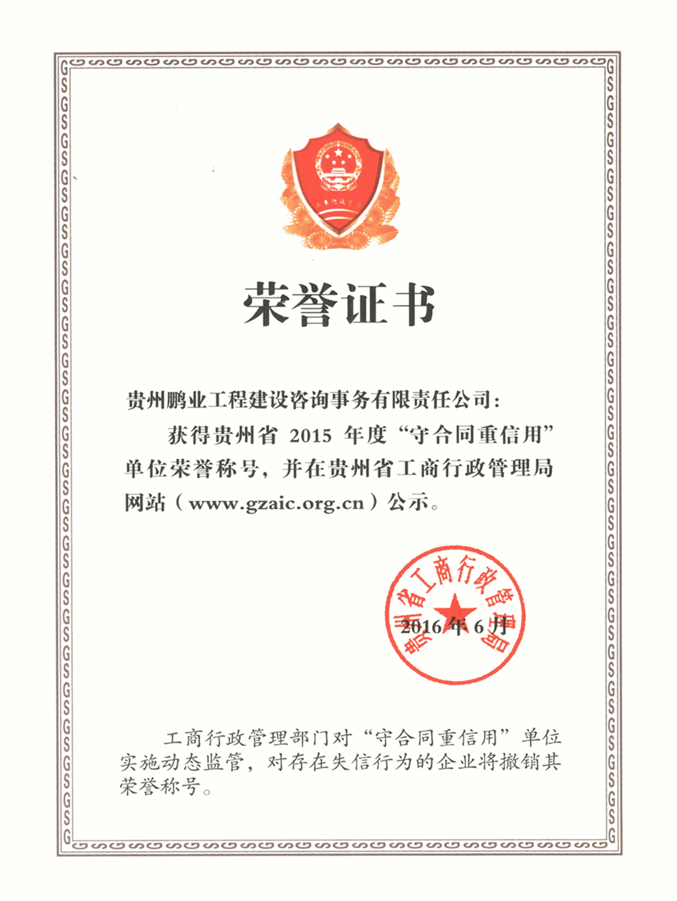 獲得貴州省2015年度“守合同重信用”單位榮譽(yù)稱號(hào)